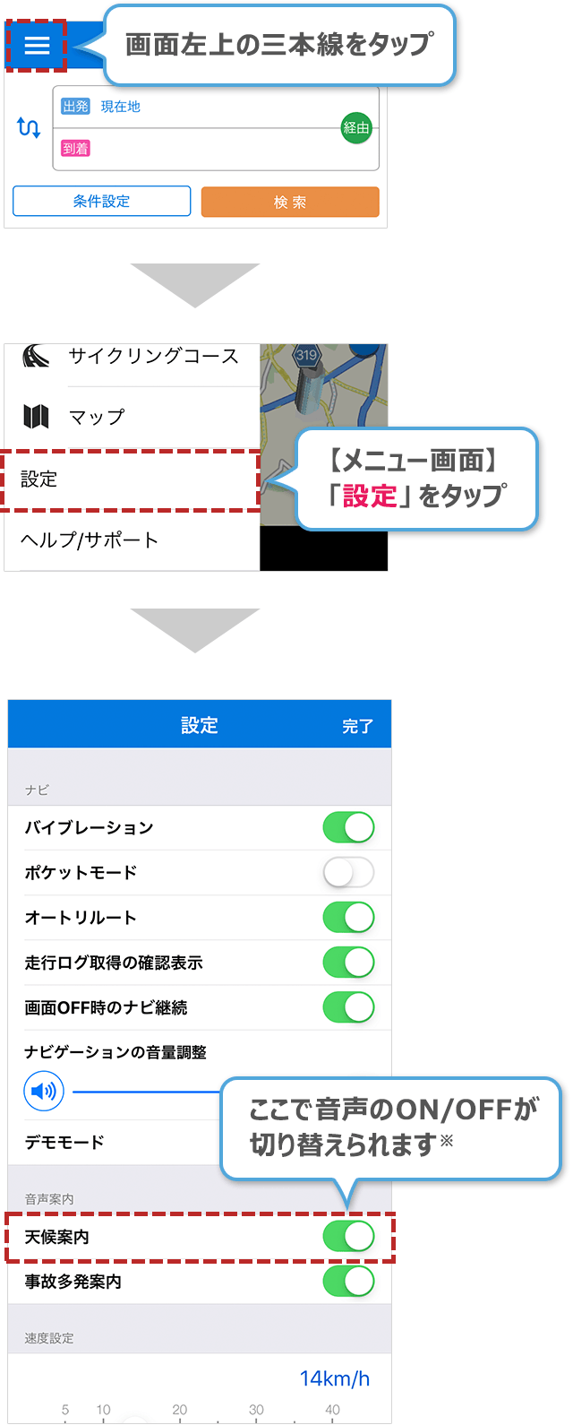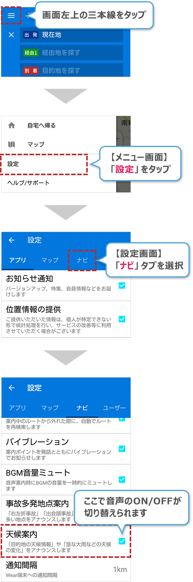 今回はルート案内時に音声で天候をお知らせする「天候案内」機能についてご紹介します。