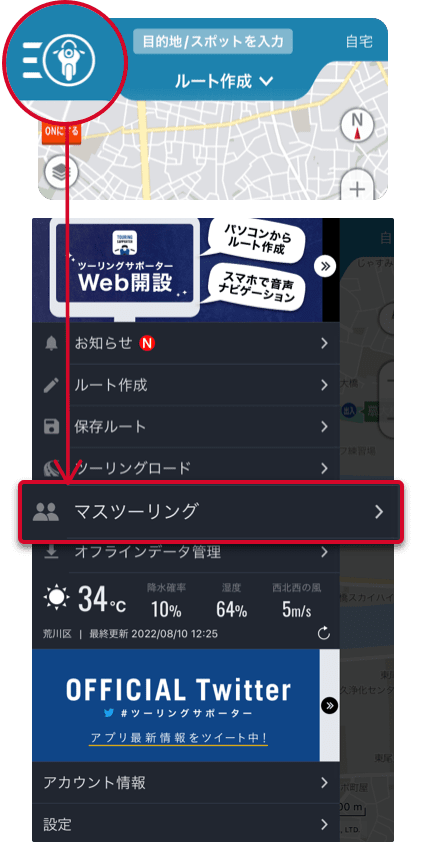 1.ツーリングサポーターの公式Twitterアカウント(@navitimetouring)をフォローする。